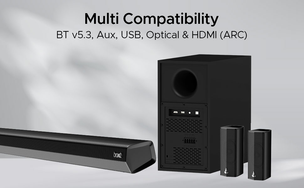 5.1 ఛానల్ సౌండ్ సెటప్ కలిగిన ఈ boAt Aavante Bar 3600 ప్రత్యేకమైన సరౌండ్ సౌండ్ అనుభవం అందిస్తుంది. మీరు సినిమా చూస్తున్నా, గేమింగ్ ఆడుతున్నా – ప్రతి సౌండ్ ఎఫెక్ట్, ప్రతి మ్యూజిక్ బీట్ లైవ్లో ఉన్నట్లే అనిపిస్తుంది. థియేటర్కి వెళ్లకుండా ఇంట్లోనే ఫుల్ ఎంజాయ్ చేయవచ్చు.